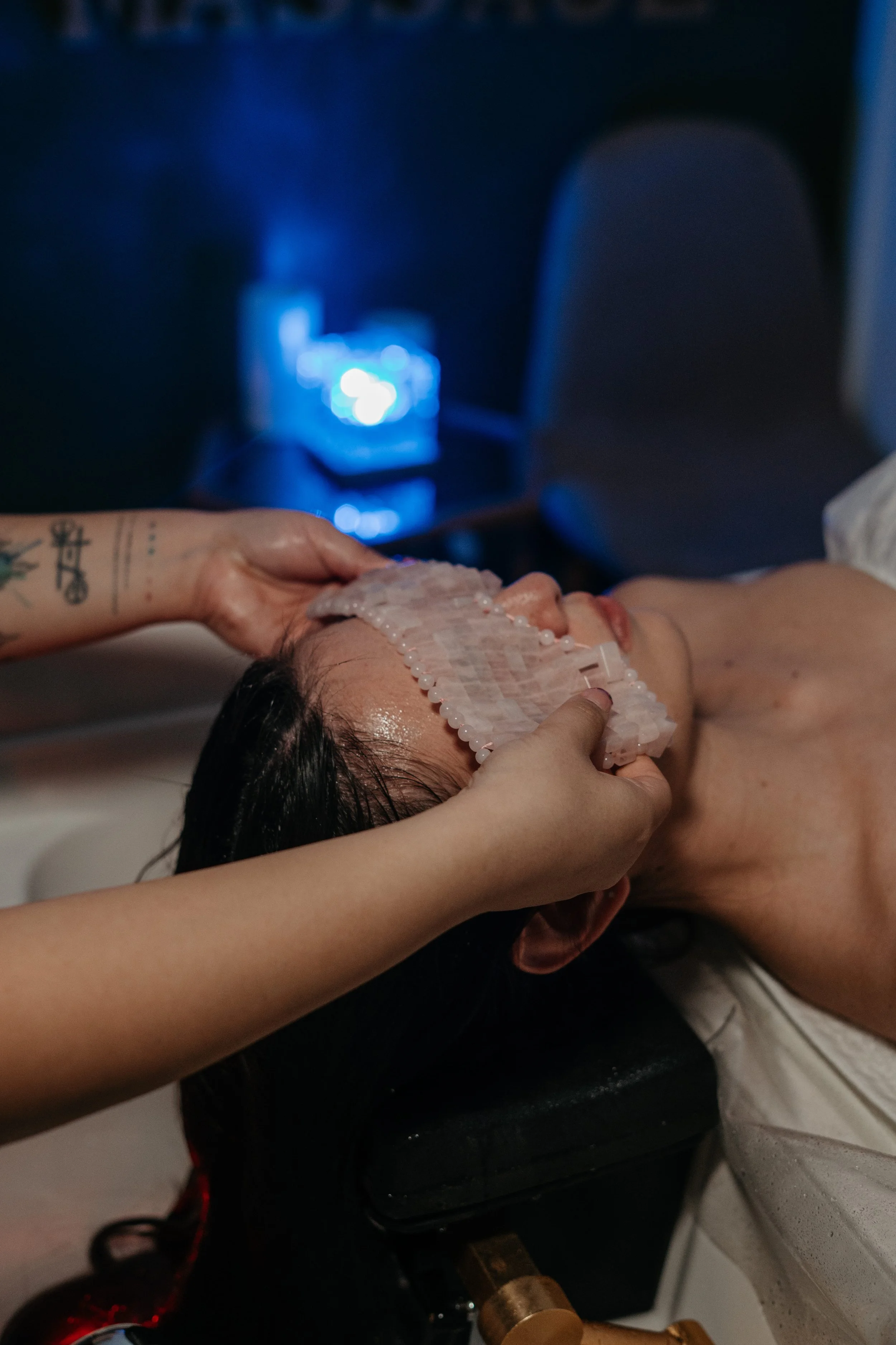 Masaje craneo-facial que libera tensión y estimula la circulación.
